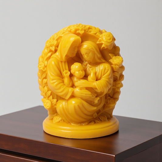 Unsere Bienenwachskerzen mit Jesus- und Heiligenmotiven sind mehr als nur Dekoration – sie sind ein Symbol für Licht, Hoffnung und Verbundenheit. Jede Kerze wird aus 100 % reinem Bienenwachs handgegossen und trägt den warmen Goldton und den natürlichen Duft, der nur durch echtes Wachs entsteht.