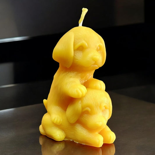 Unsere Bienenwachskerzen in Hunde- und Pfotenform sind eine liebevolle Hommage an unsere vierbeinigen Begleiter. Jede Kerze wird aus reinem, regionalem Bienenwachs gefertigt und trägt den warmen, goldenen Schimmer, den nur echtes Bienenwachs besitzt. Der feine, natürliche Honigduft entsteht ganz ohne Zusätze – ein Geschenk direkt aus dem Bienenstock.