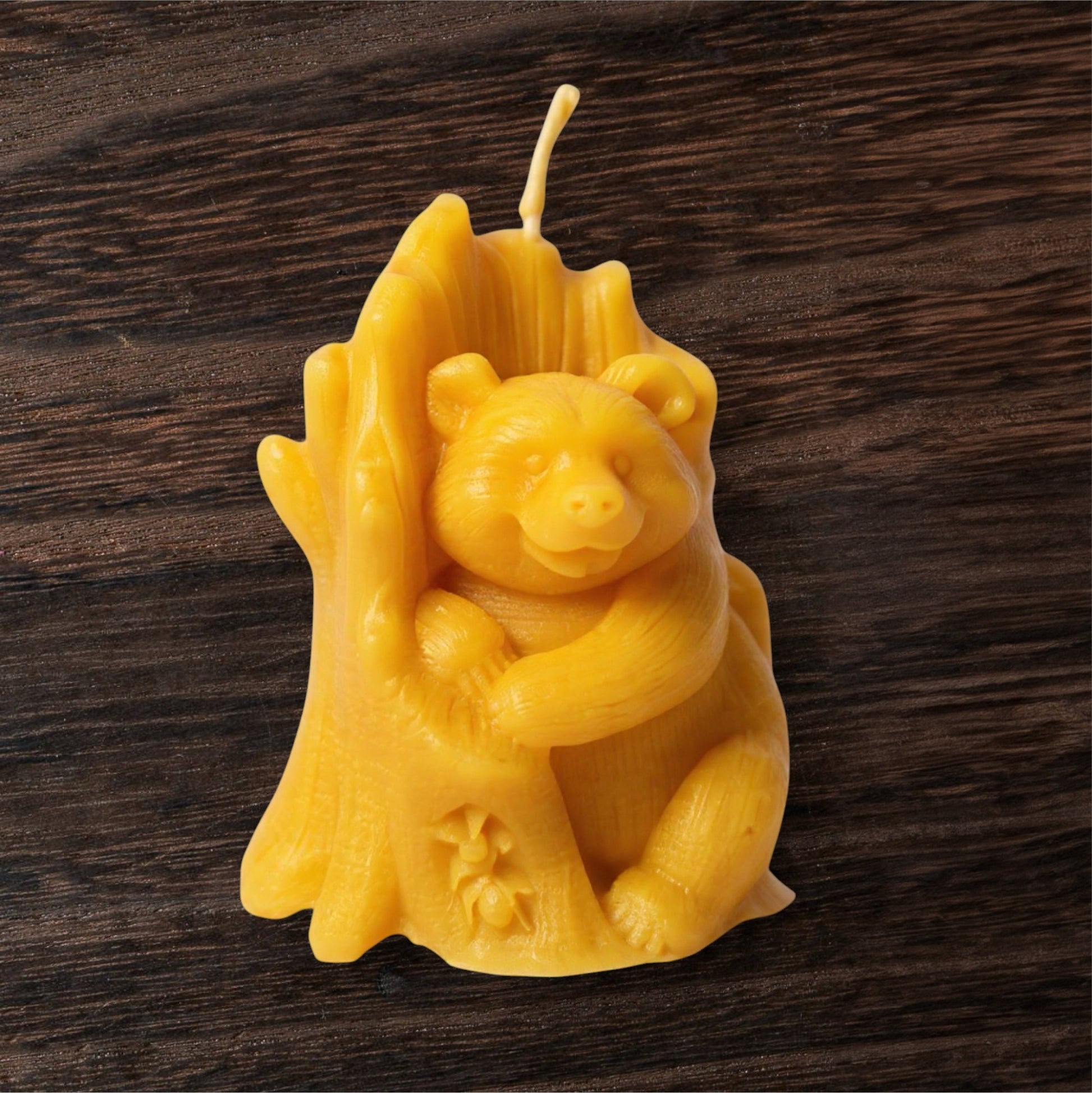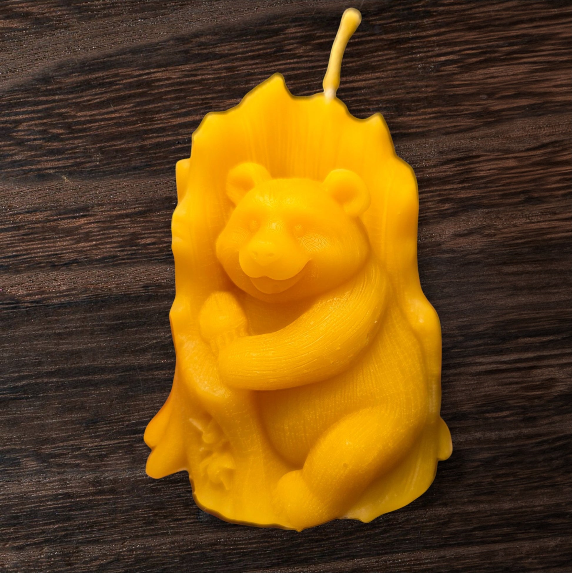🐻 Bären-Kerze mit Baum – Handgemacht aus 100 % Bienenwachs