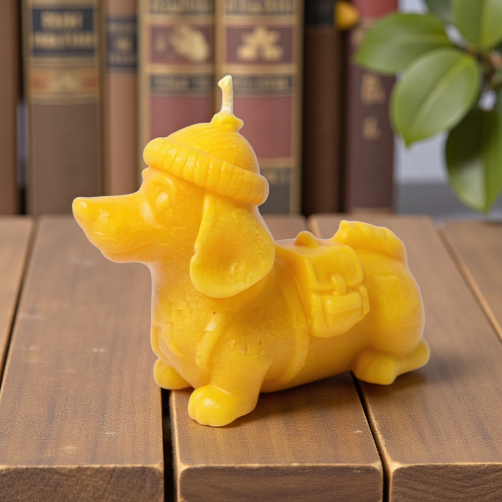 Abenteuer-Dackel-Kerze aus Bienenwachs – Handgemacht & wanderlustig