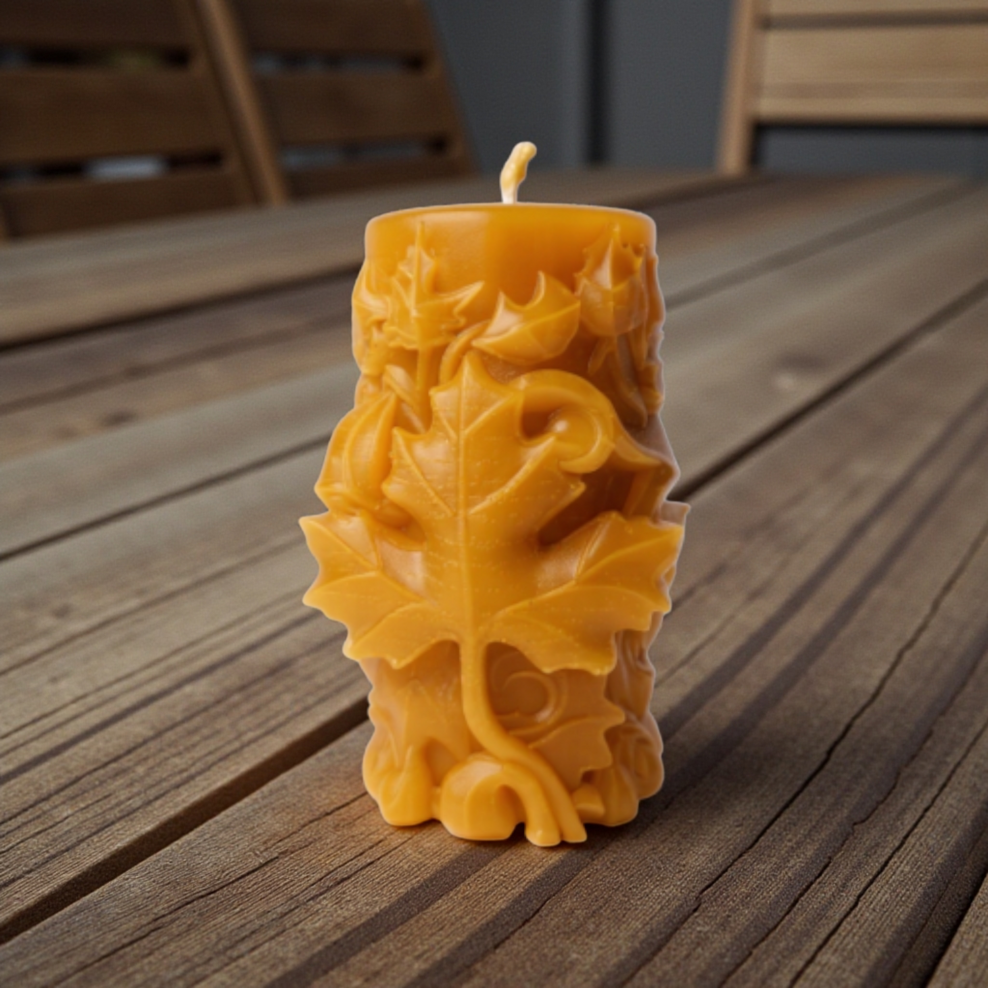 🍁 Blatt-Kerze mit Ahornmotiv – Handgemacht aus 100 % Bienenwachs