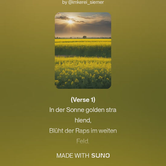 Unser Rapssong erzählt die Geschichte eines Moments, den jeder Imker kennt: Wenn der Raps in voller Blüte steht und die Landschaft in ein goldenes Meer verwandelt, beginnt für die Bienen – und für uns – die schönste Zeit des Jahres.