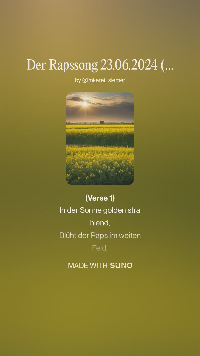 Der Song ist ein musikalisches Dankeschön an die Rapsfelder, die jedes Jahr aufs Neue zeigen, wie viel Schönheit in der Natur steckt. Er feiert die Arbeit der Bienen, die Ruhe des Feldes, den Duft der Blüten und den Moment, in dem aus Nektar Honig wird.