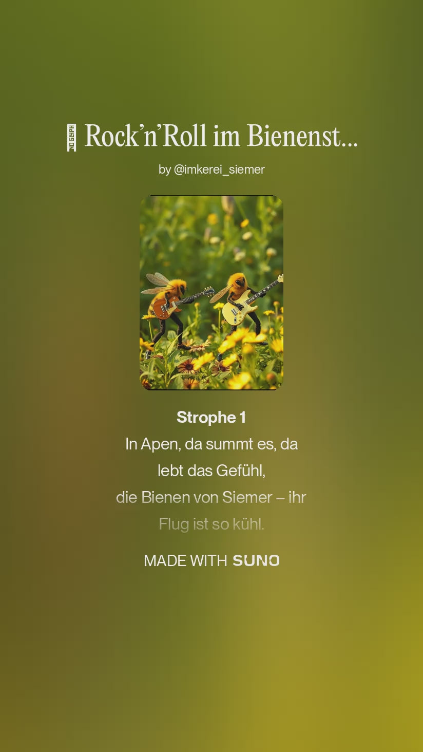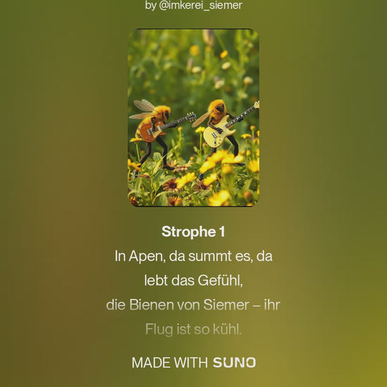 In Apen pulsiert das Leben – und bei der Imkerei Siemer ganz besonders. Unser Song „Rock’n’Roll im Bienenstock“ erzählt davon, wie lebendig, fröhlich und naturverbunden unsere Arbeit ist. Die Bienen tanzen im Wind, tragen Pollen im Gepäck und bringen den Sommer direkt ins Honigglas.
